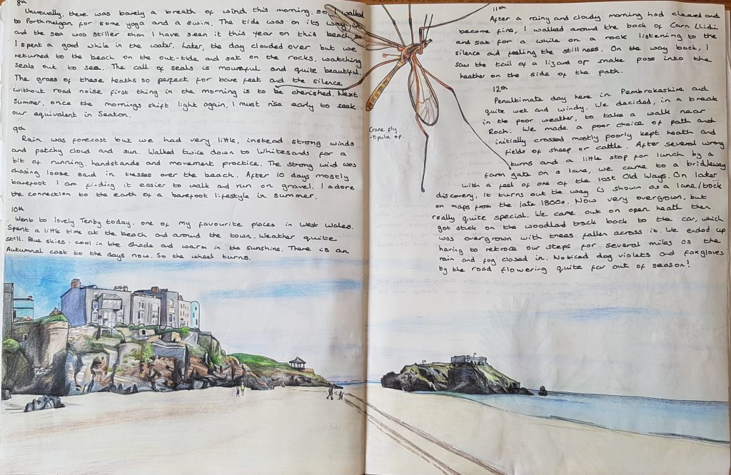 I started my first nature journal in 2016, shortly after moving to the coast in Devon, UK to begin a new freelance lifestyle. For the past few years, I had lived in an urban part of the UK, though I grew up in nature in a village and I missed that lifestyle.