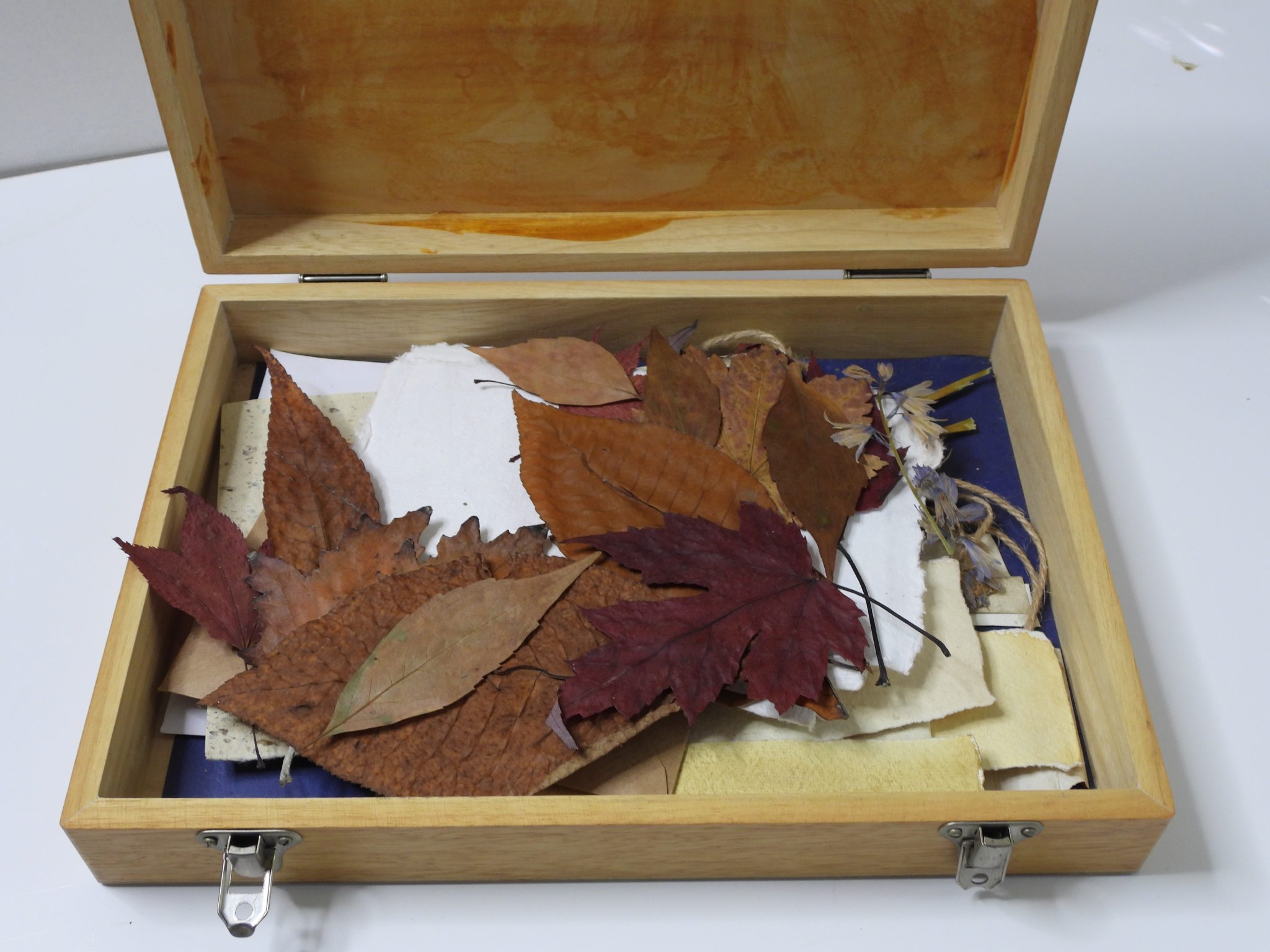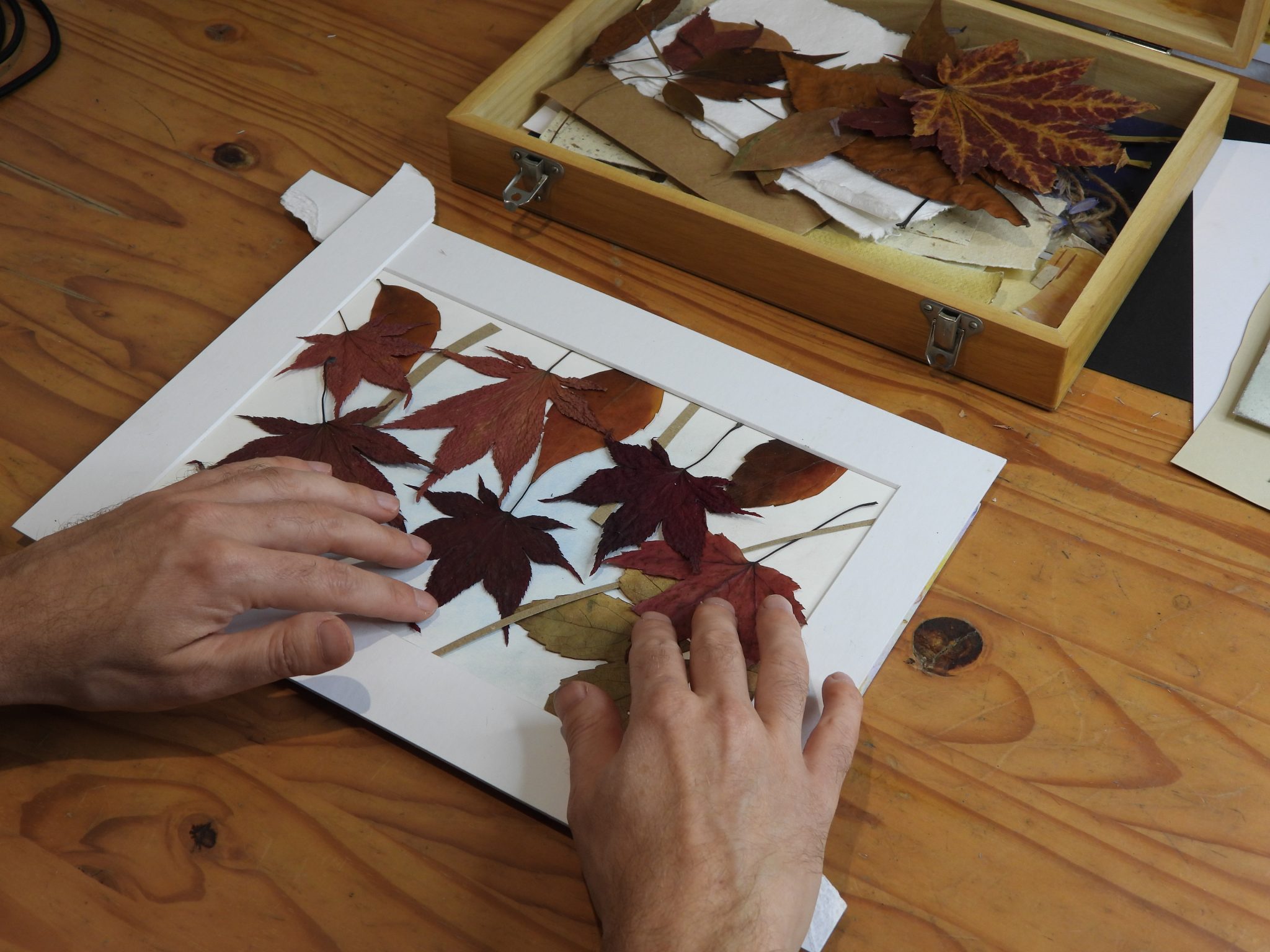 Autumn leaves – how to press. If you’d like to bring your own, gather the leaves when they are in their best autumn colours on a dry day. Pick leaves from the trees or freshly fallen leaves and avoid any that have curled or browned. Place them between two sheets of blotting paper, newspaper, or kitchen towel between the pages of a heavy book and allow them to press for at least a week. When ready, put into an envelope and keep flat, cool and dry.