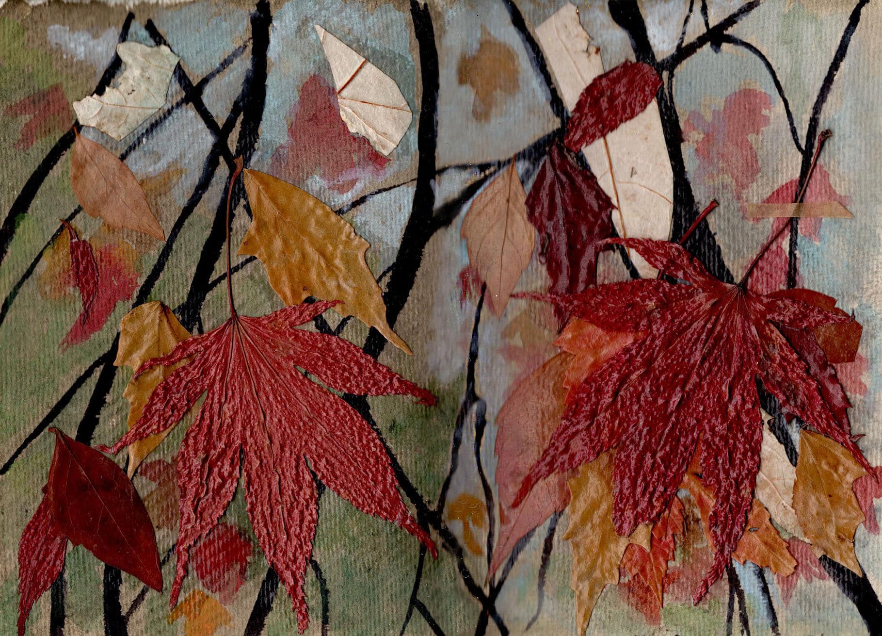 Autumn mists and autumn leaves – Mixed media collage day. Wednesday 22nd October. Umborne Bridge Studio, Colyton, EX24 6LU